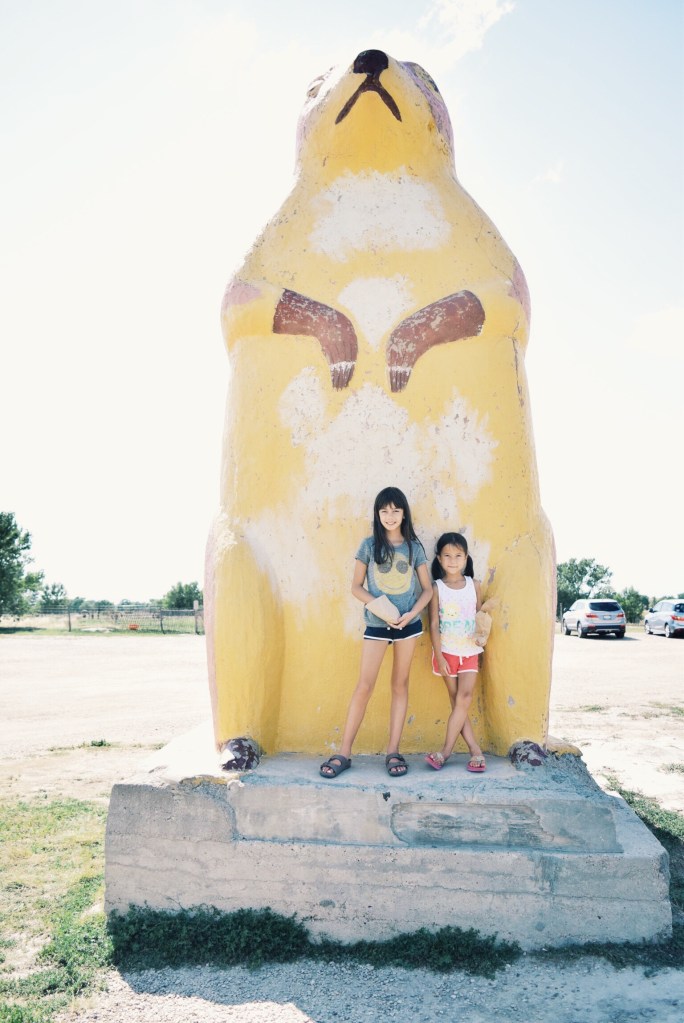 leeniespace_aileencruz_roadtrip91We continued on to the Badlands of South Dakota. There are hikes and tours of the ruddy peaks, but in the 100 degrees heat we drove the scenic loop and stopped just briefly to feed prairie dogs. The town of Wall and its eponymous Wall Drug Store was a good place for dinner before continuing on to Rapid City.